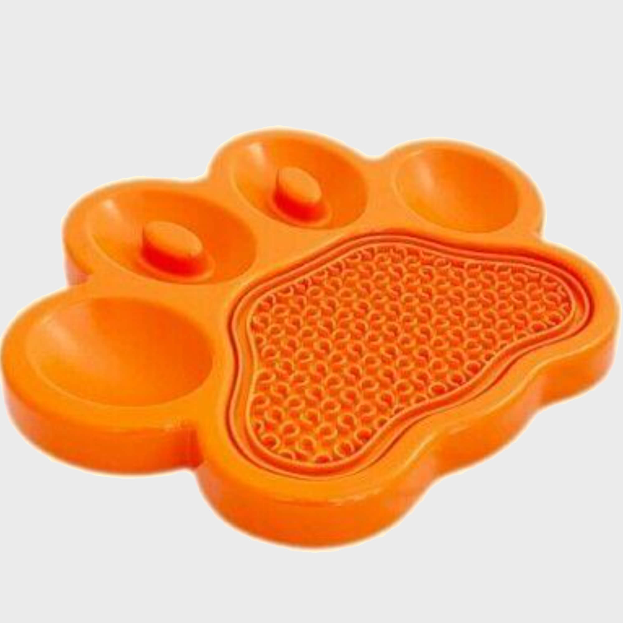 - 2 in 1 Design: The Paw design provides 2 standard bowls, 2 slow feeding bowls and a centre hashed lick pad area.