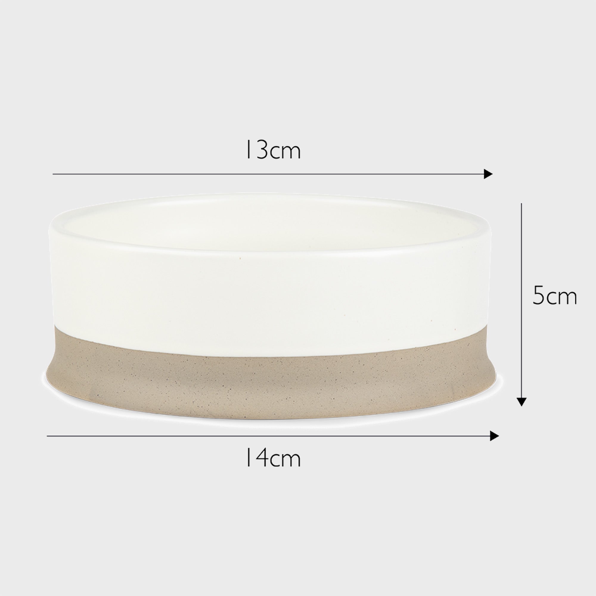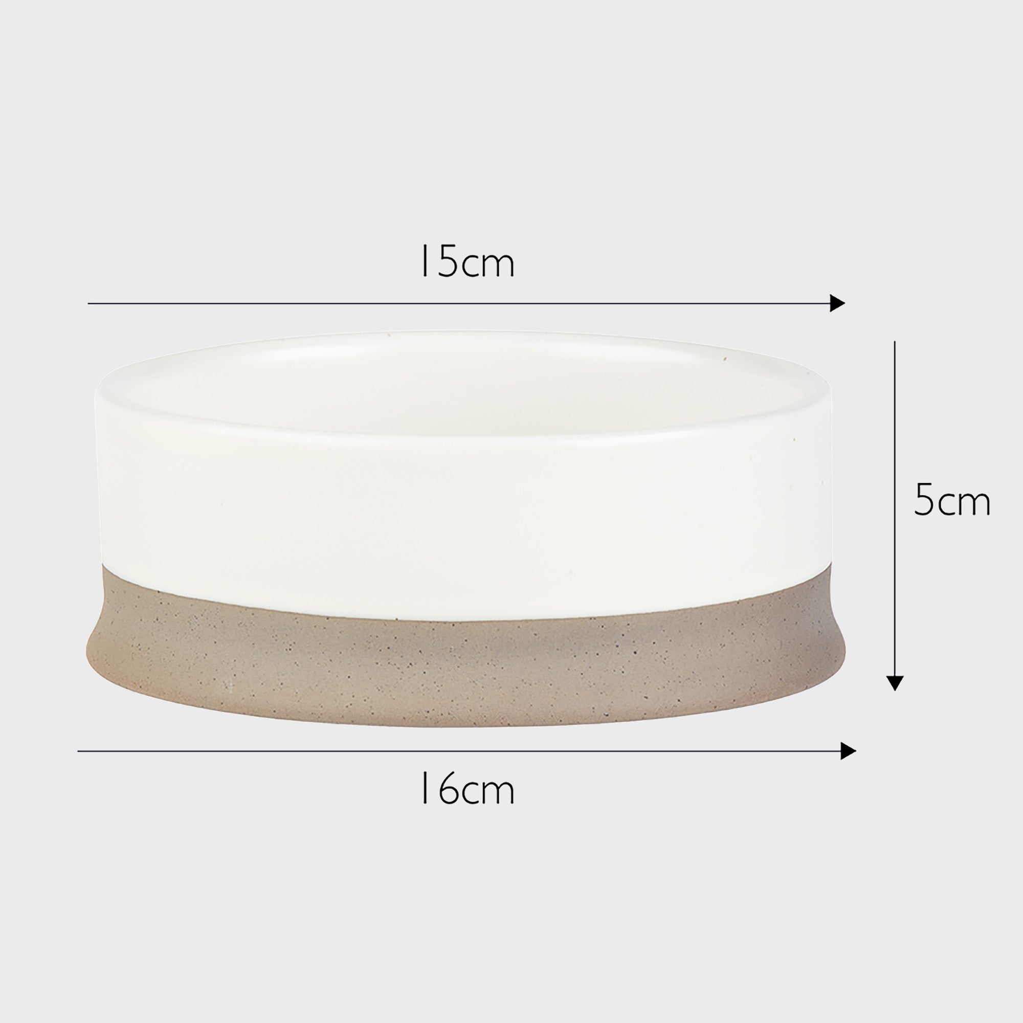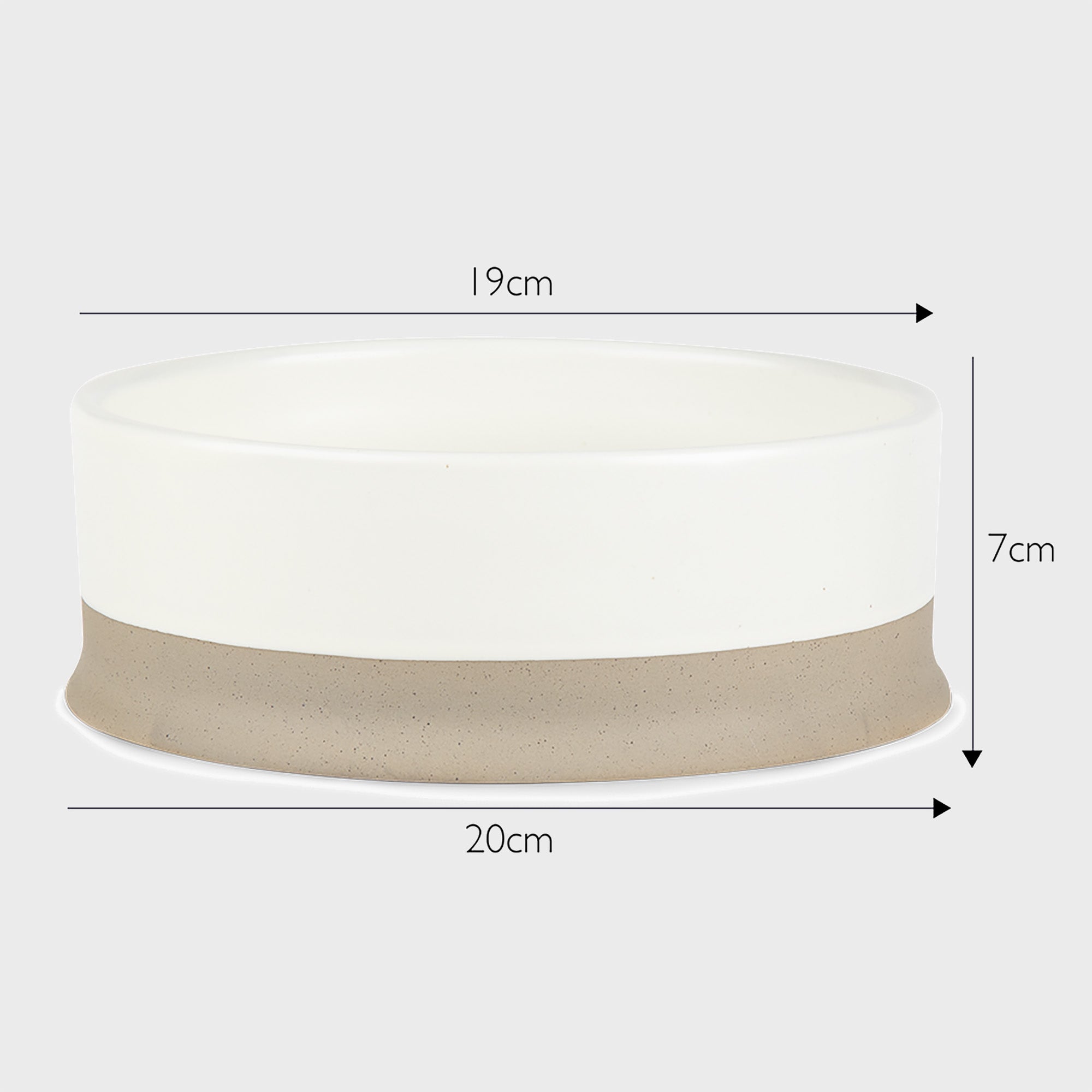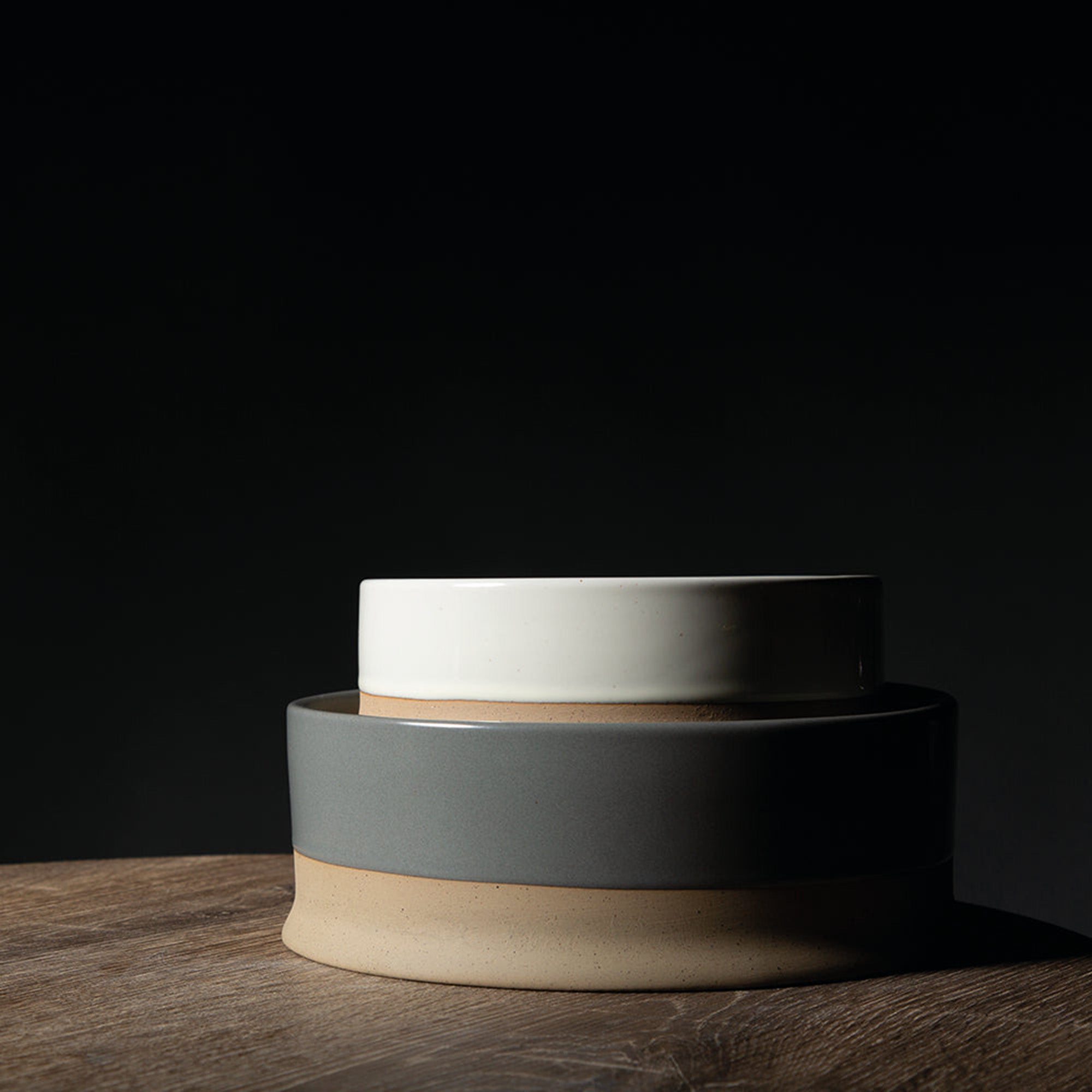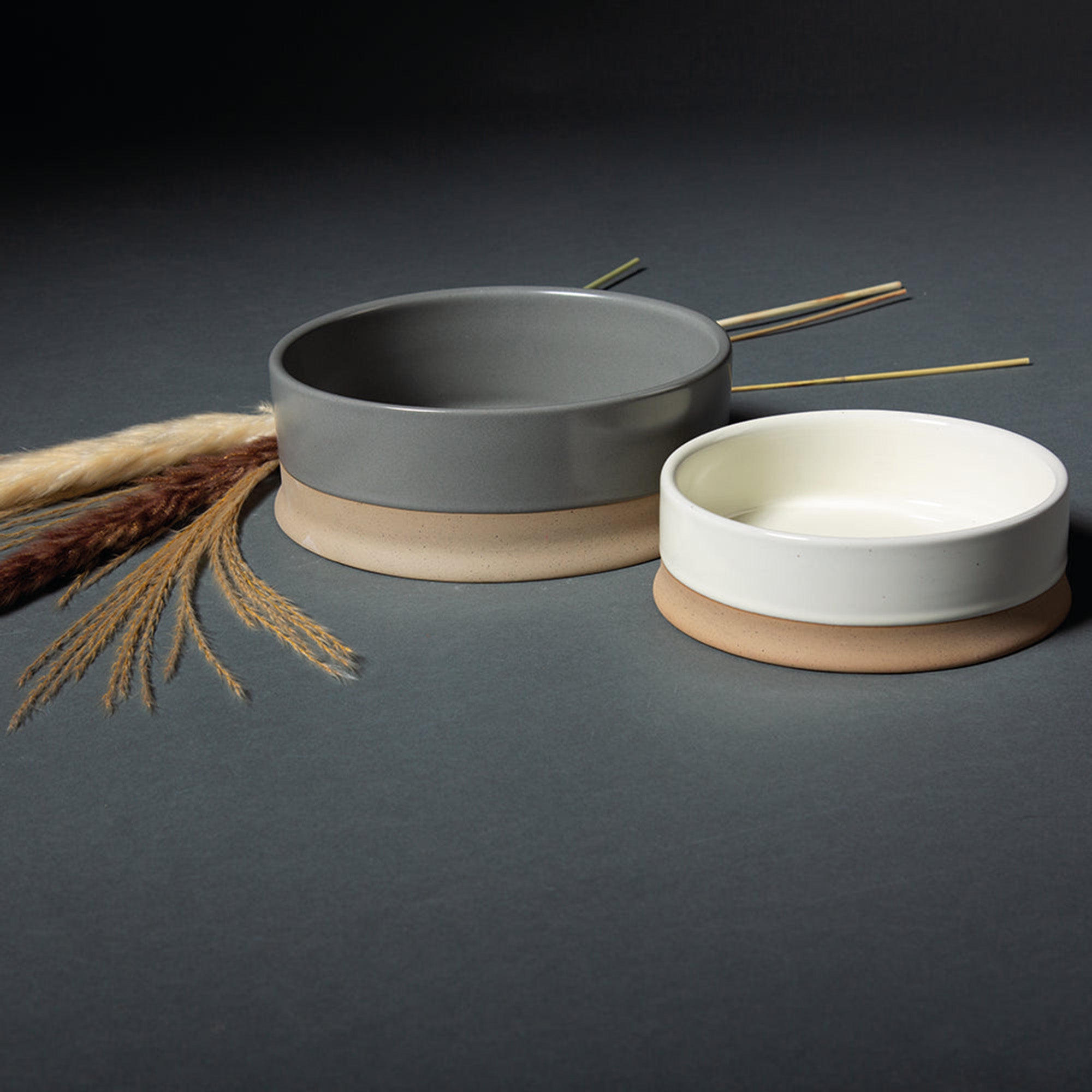 Our Scandi range has been widely influenced by Nordic designs and lifestyles. Using clean, simple lines with a flared base, we have created a functional, non-tip shape that looks modern and minimal. By then combining matt cream and grey glazes with a natural 'Potters Clay' we have taken the design element further to create a modern artisan look, so form really has been fused with function. Each Scandi bowl is hand dipped making each one unique.