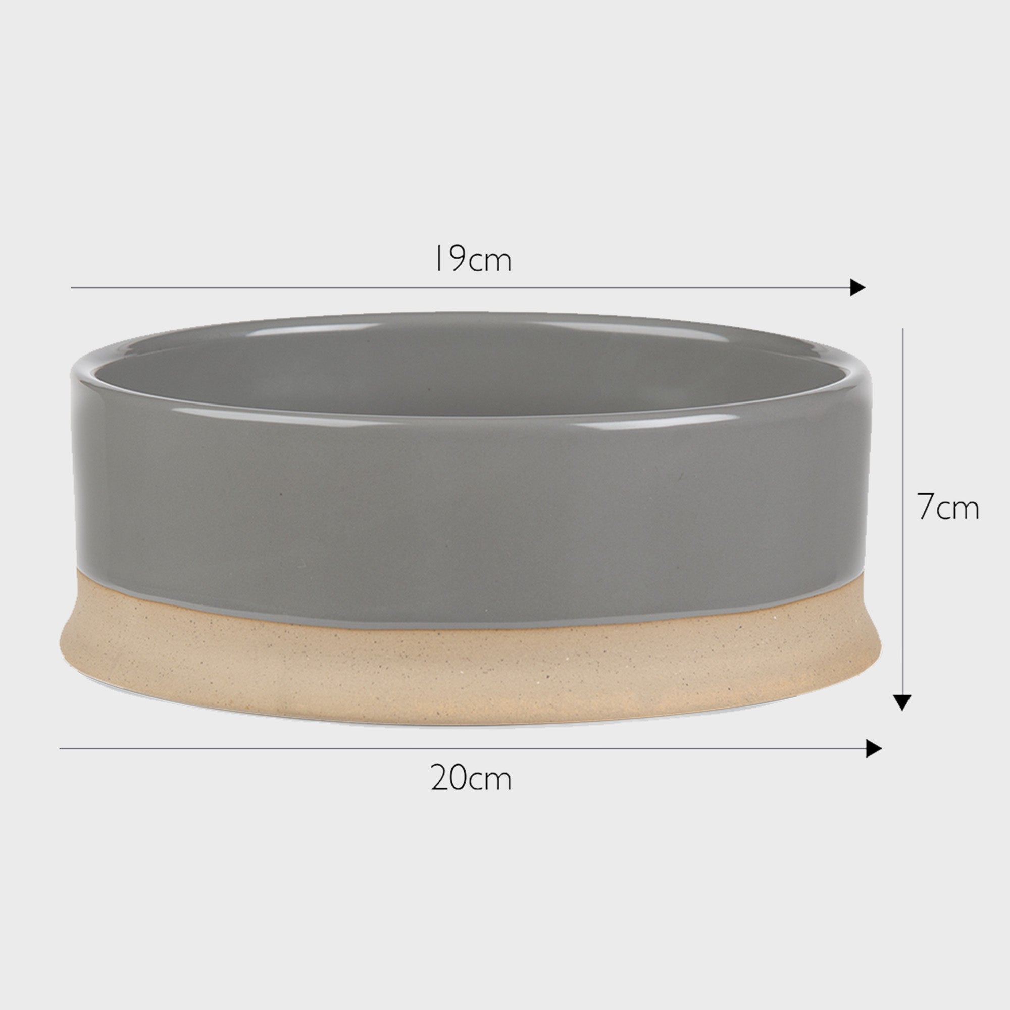 Made from heavy stoneware ceramic it's designed to help prevent pets from moving the bowl around when eating, with a flared base to also help prevent bowls from tipping over. The thick sides help keep food and water cooler for longer.