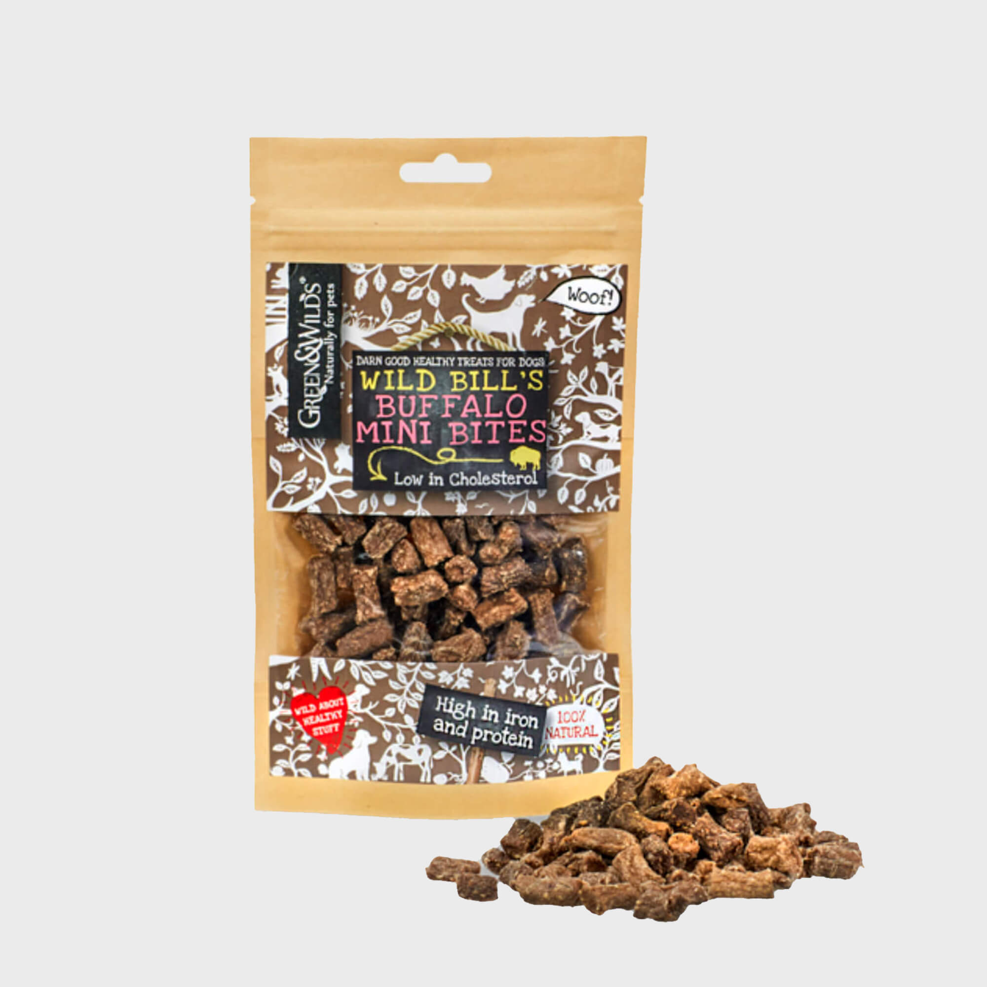 Buffalo mini bites are 100% natural, from the wilds, buffalo meat treats. Buffalo meat is leaner, lower in cholesterol and higher in protein than traditional beef. It also has a higher concentration of iron and essential fatty acids.