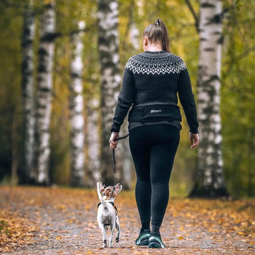 Put on your jacket, clip the leash to the belt, and you’re ready in seconds.