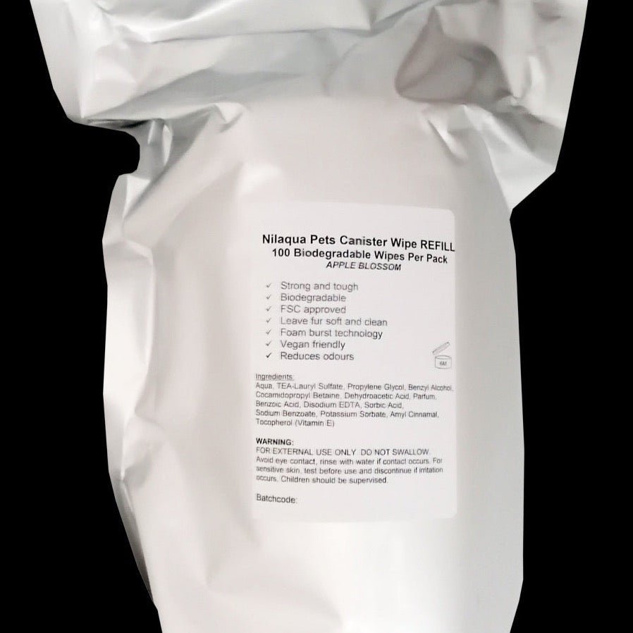 Our kind & gentle 100% bamboo wipes are now available in a refill pack. Enriched with Apple Blossom and Vitamin E you can clean even the muckiest pups! Our super strong bamboo wipes are extra soft for paws, tums and bums and twice as thick as the average wipe. Nilaqua pet wipes come with a resealable lid for lasting freshness.