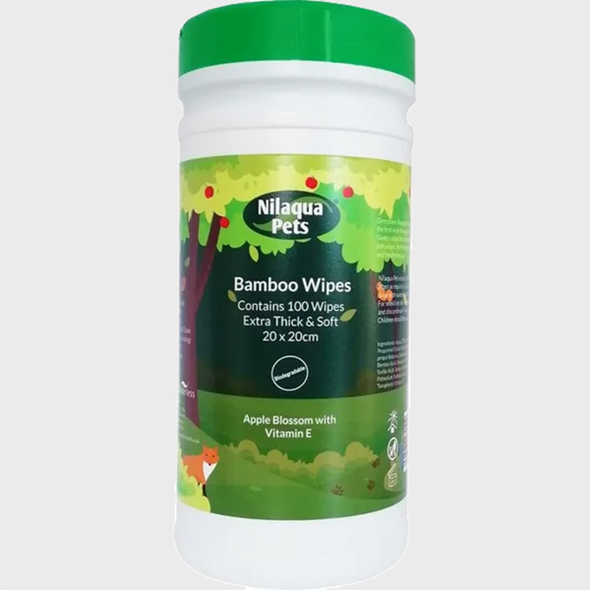 Nilaqua Pets Bamboo Pet Wipes are kind & gentle made from bamboo fibres. Enriched with an apple blossom fragrance and packed with Vitamin E, this wipes will clean even the muckiest of pups! Our super strong bamboo wipes are twice as thick as the average wipe and are extra soft for paws, tum & bums. Nilaqua Pets Bamboo Wipes come in a resealable canister for lasting freshness and have eco-refills available to help reduce waste!