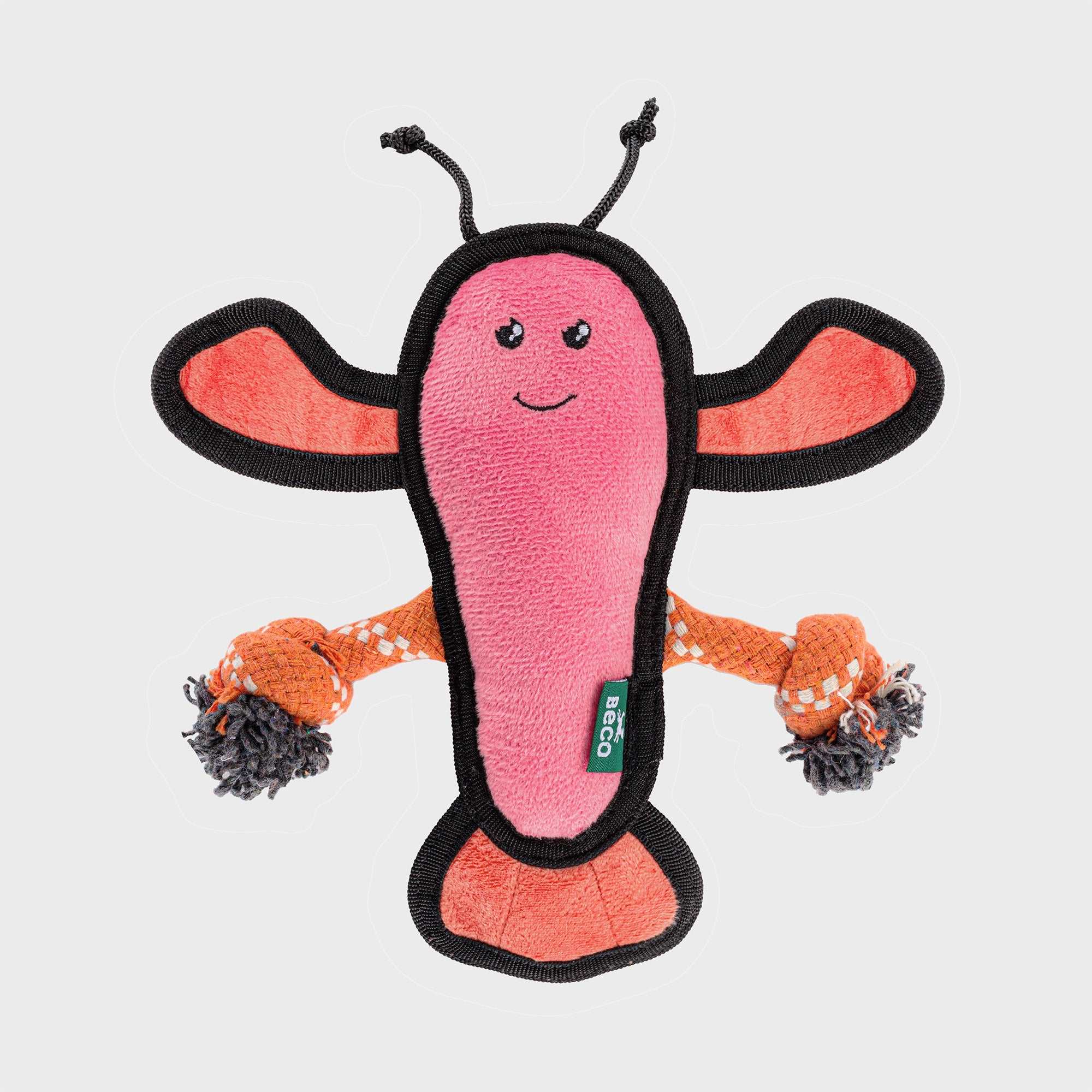 The stuffing of this toy is made from recycled materials, giving waste a second life and encouraging its reuse. The panels are woven together with double stitching and the seams are reinforced with a second layer of cloth. On top of the reinforced seams, the cloth itself is double layered to give extra resilience against chewers. As hardy as they come, so your dog can have double the fun.