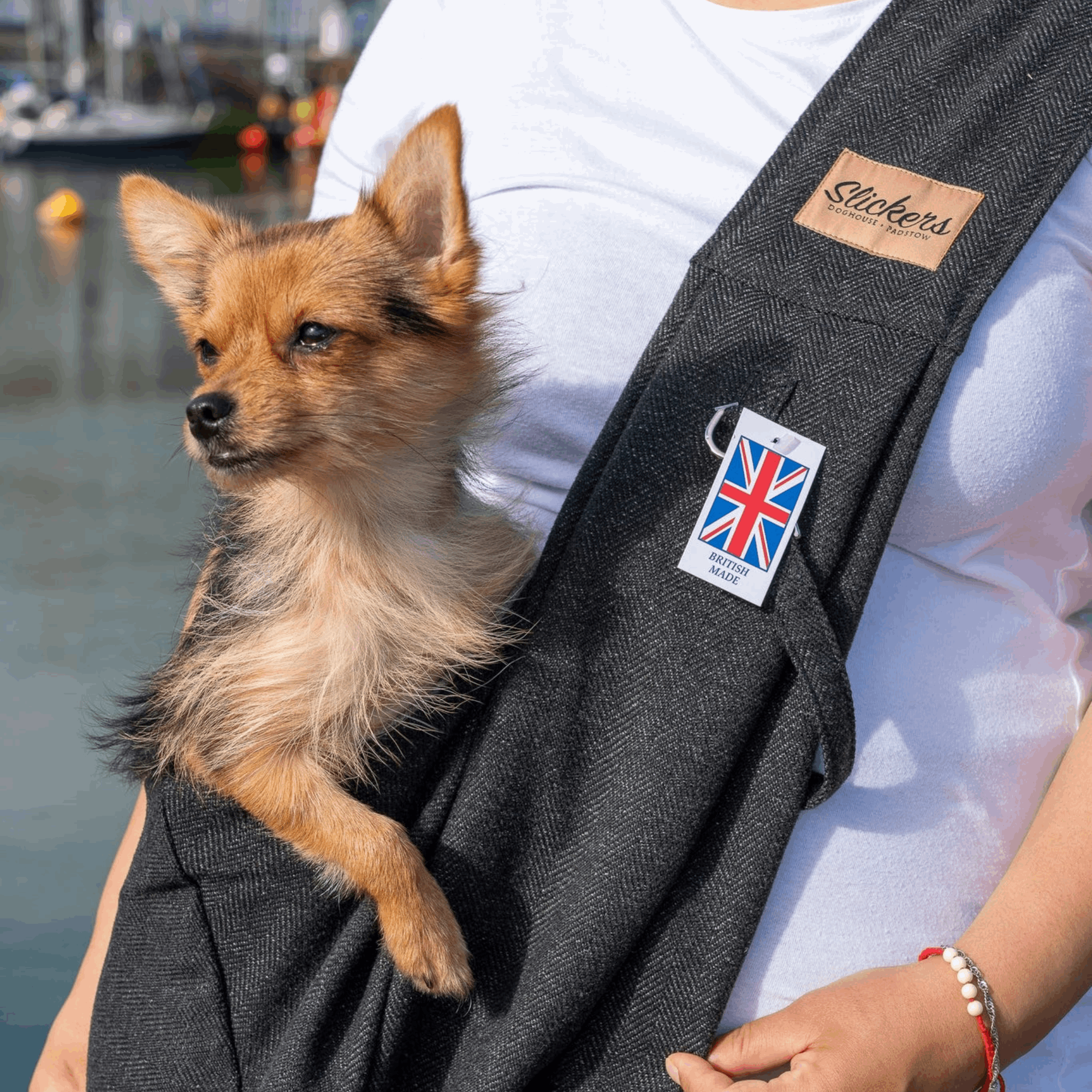 The Slickers Dog Sling is the perfect solution for dog owners who want comfort, convenience and British-made quality.