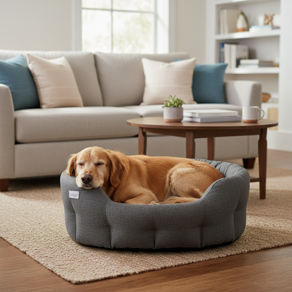 The bed’s walls are filled with premium bonded thermal fibre, giving them a sturdy supportive structure that keeps drafts at bay. A reinforced seam runs around the outer edge for added strength, ensuring the bed holds its shape beautifully over time. Inside, the cushion is removable, reversible and fully replaceable, and the waterproof base adds everyday practicality.