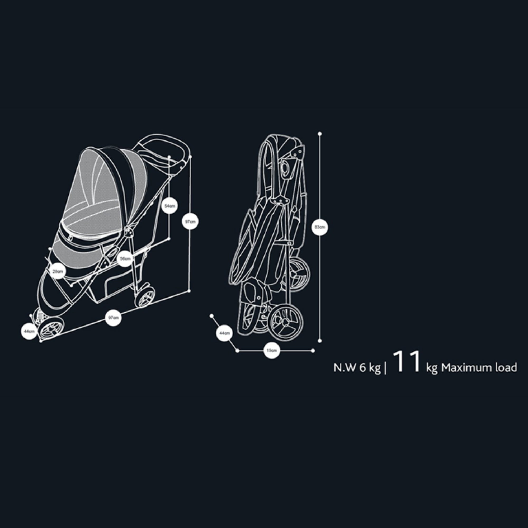 The InnoPet Buggy Avenue combines mobility, comfort and convenience in a compact three-wheel design usually found on more premium models. Suitable for small dogs or cats up to 11kg, this lightweight stroller is perfect for city walks, errands, and travel, offering excellent manoeuvrability and thoughtful features for both pet and owner.