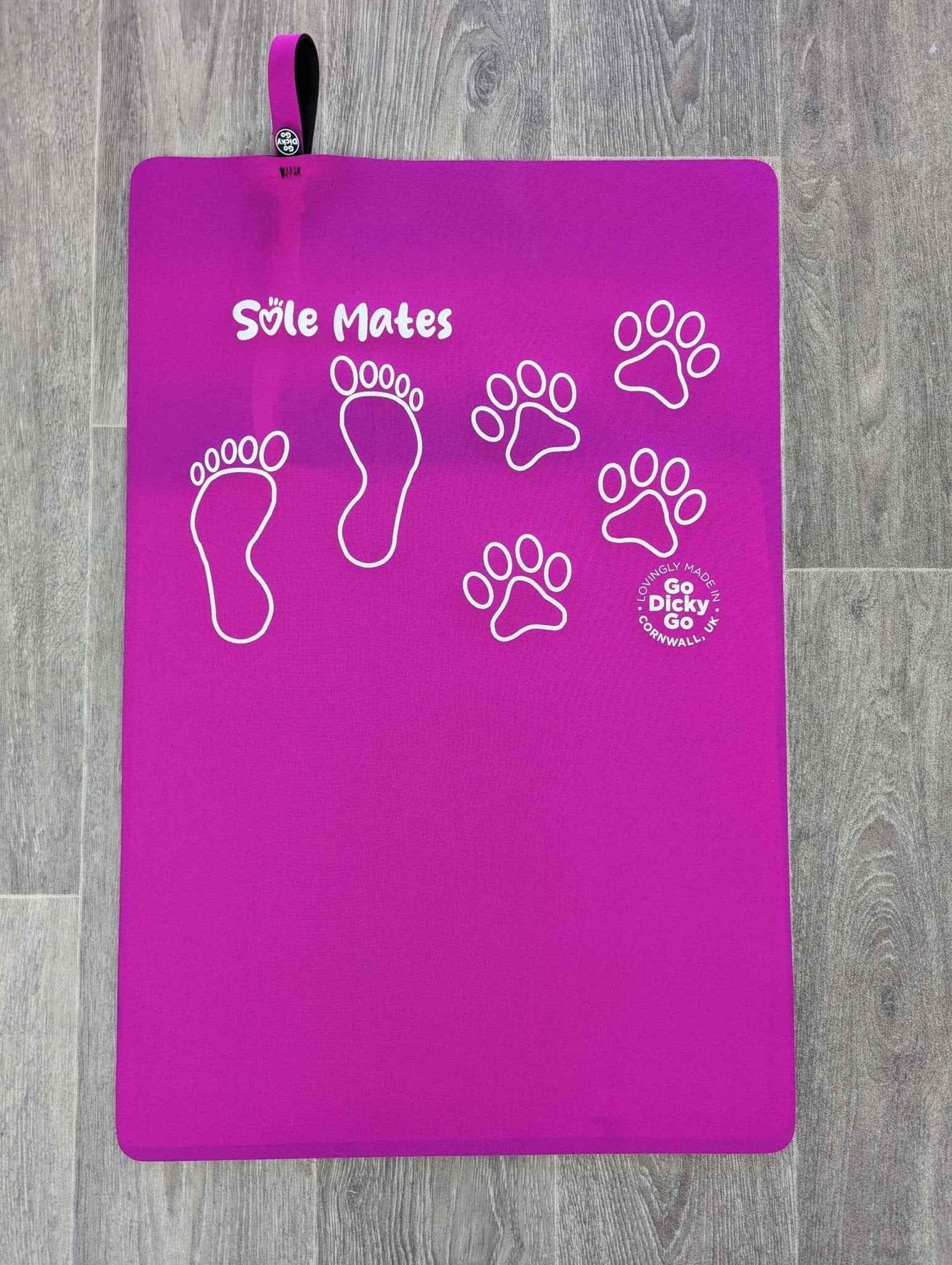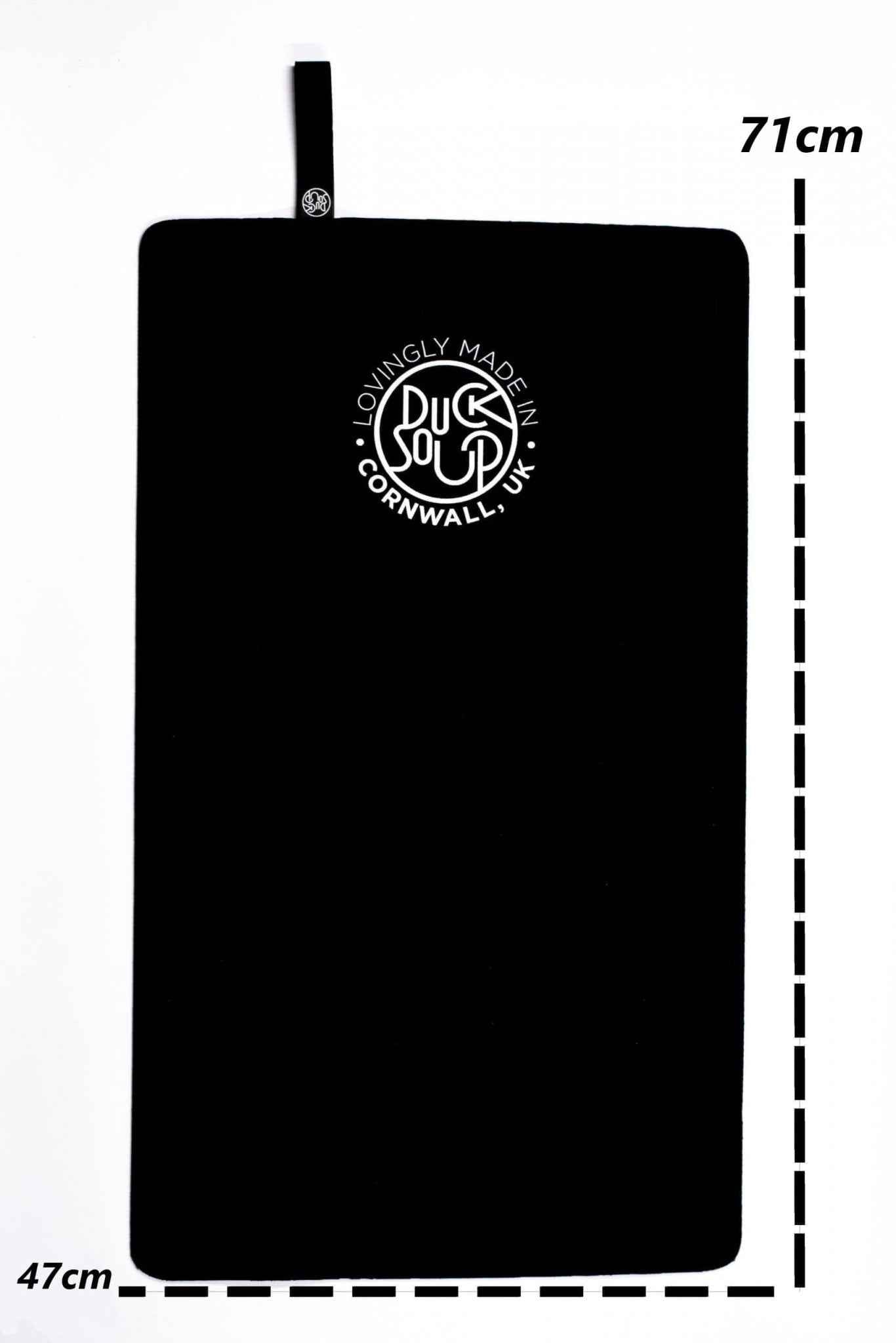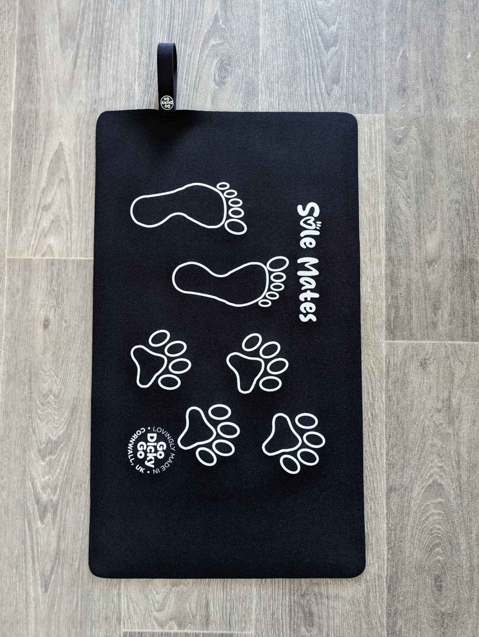 Our neoprene mats are great for so many different jobs. The rubber underside gives it a grippy bottom and provides a waterproof and thermal barrier so the top material is warm and dry. It can rinsed clean or put in a cool machine wash and it air dries quickly. The top band can be used to hang up your mat or keep it rolled up when in transit. Like so many of our products, you'll wonder how you managed without it!