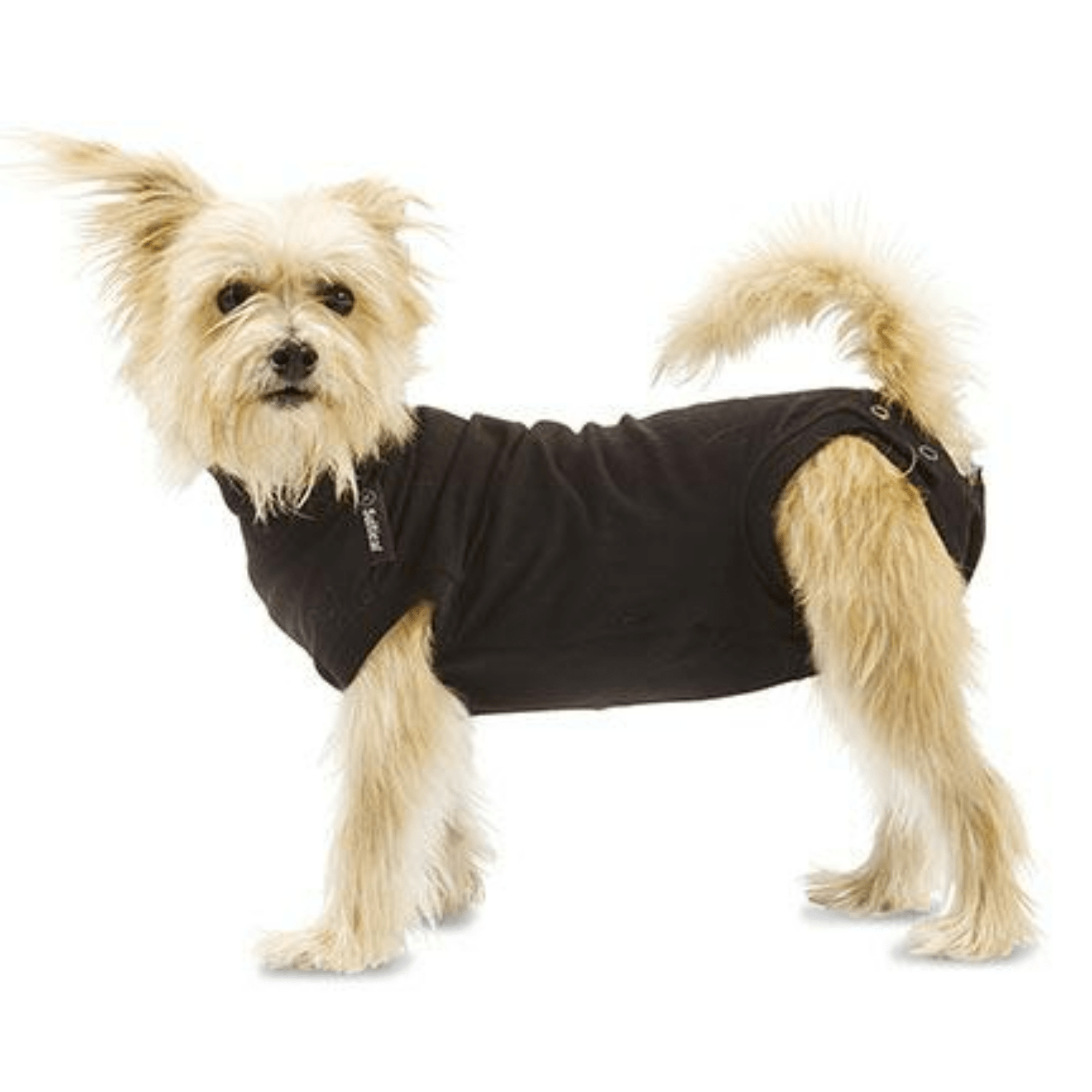 Acting as a second skin, it allows your dog to go about his normal routine all the while keeping the wound clean, dry and protected. All this equals less stress, a faster recovery, and a happier pet. Just ask yourself, would you want to wear a cone?