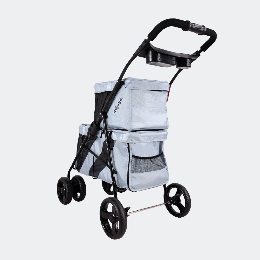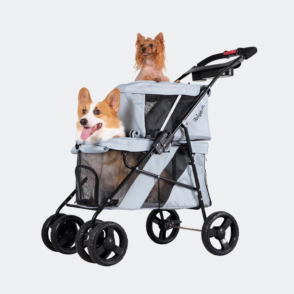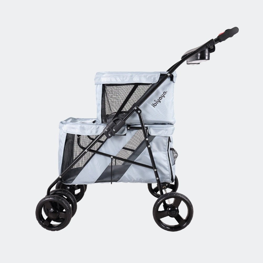 The Ibiyaya Double Decker Pet Bus in Silver Grey is a stylish and practical stroller designed for multi-pet households. Whether you’re heading to a park, pet show or vet visit, this clever two-tiered pram gives each of your furry friends their own secure and private space, eliminating the need to carry separate carriers. No more FOMO – now every pet gets to join the fun.