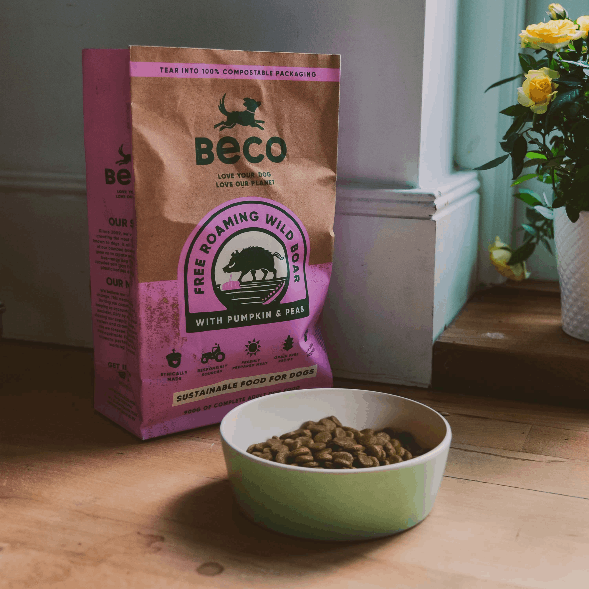 Some dogs can be picky little eaters. Nothing wrong with that though. It just means they know what they like. But wild boar, with its delicious, gamey flavour is loved by even the fussiest dogs. Wild boar is a novel protein which means this recipe is perfect for dogs with common allergies or intolerances to things like beef or chicken. Red meat tends to have a high carbon footprint but that doesnt have to be the case. Thanks to their naturally foraged diet, wild lives and lack of agriculture, when you choose wild boar instead of beef, you reduce the carbon footprint of the meat in your dogs diet by 98%.