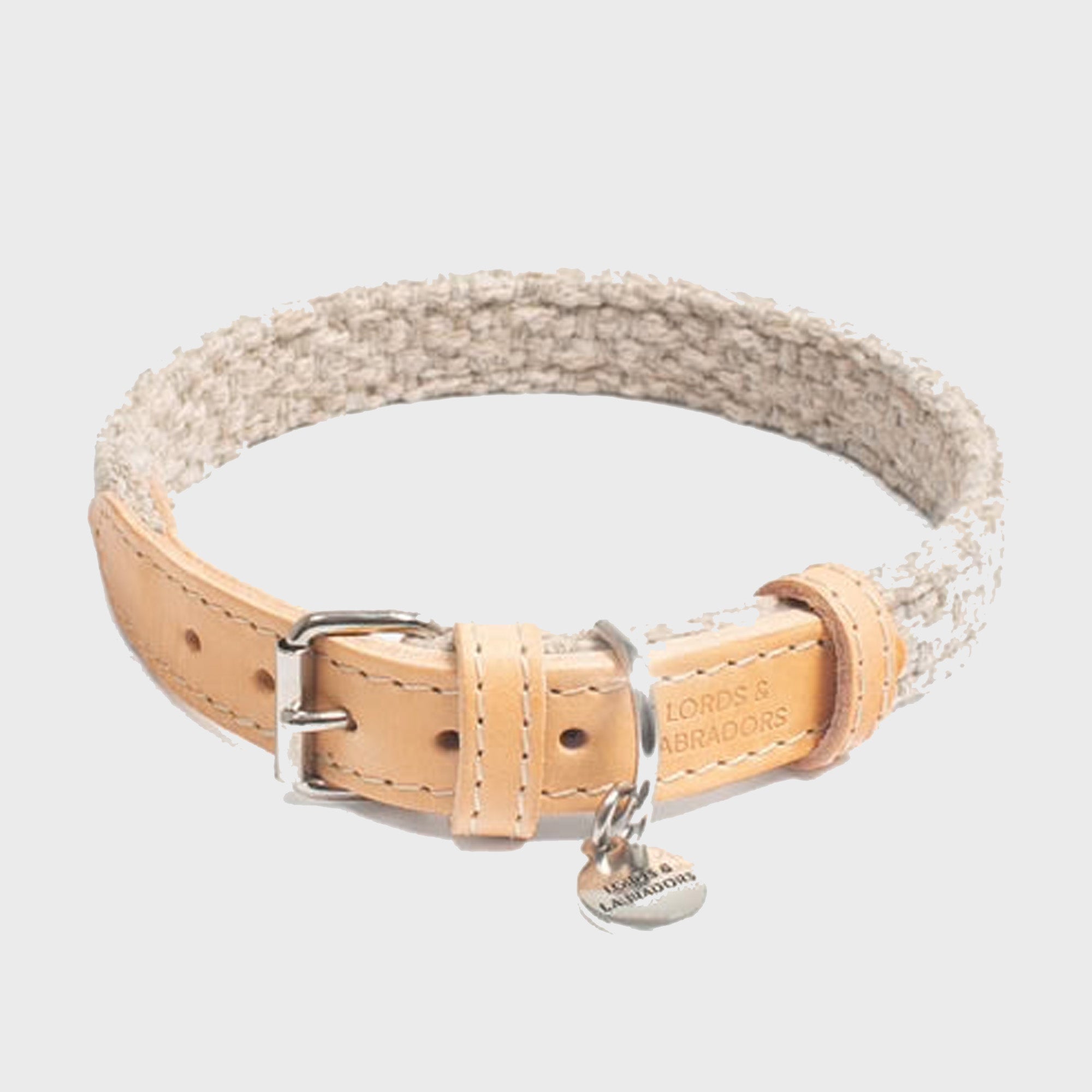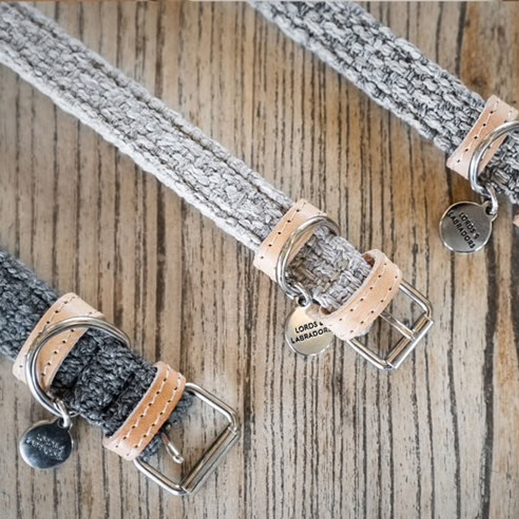 Spruce up your pups wardrobe with the Lords & Labradors Essentials Herdwick Dog Collar! This luxurious Italian leather collar adds a touch of class to your furry friends look, with its dark grey woven fabric and silver hardware details. Plus, its embossed with the L&L logo and charm – talk about paw-fection! Get the right fit in any of 7 sizes and 3 stylish colors. (The dogs will be barking with envy!)