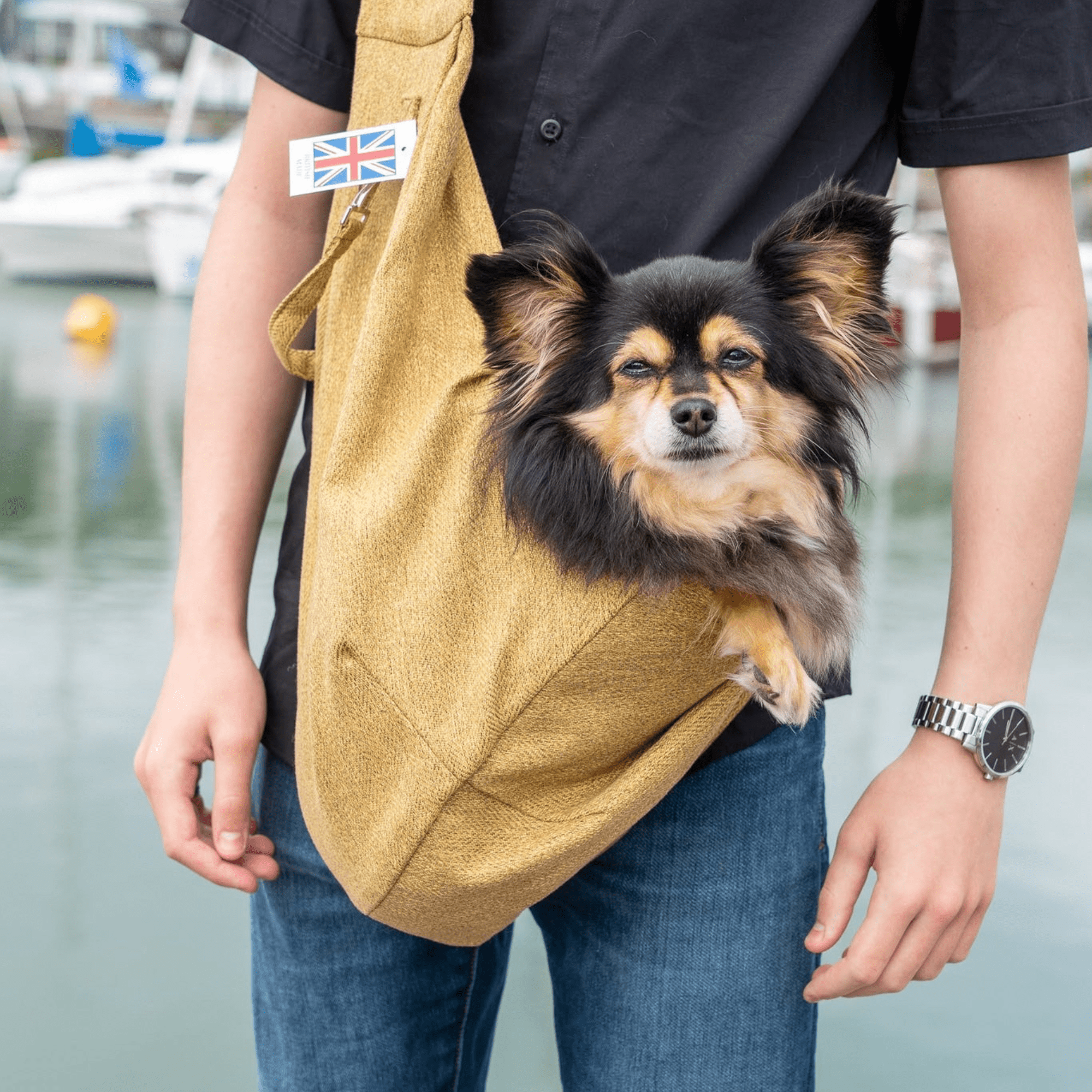 The Slickers Dog Sling makes carrying your dog effortless and enjoyable – for you and your pup.