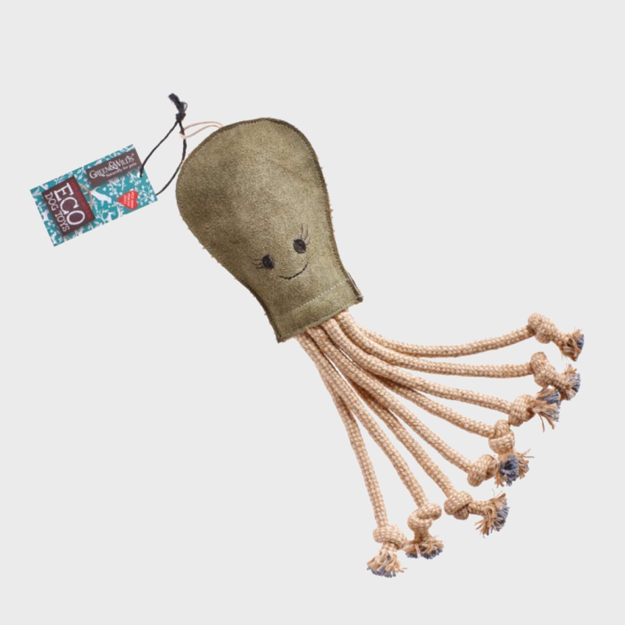 Olive the Octopus is made from four layers of jute twin stitched over recycled cotton and jute rope, a toy (and a friend) for you and your dog. A great toy for throwing, dogs can have hours of fun with.
