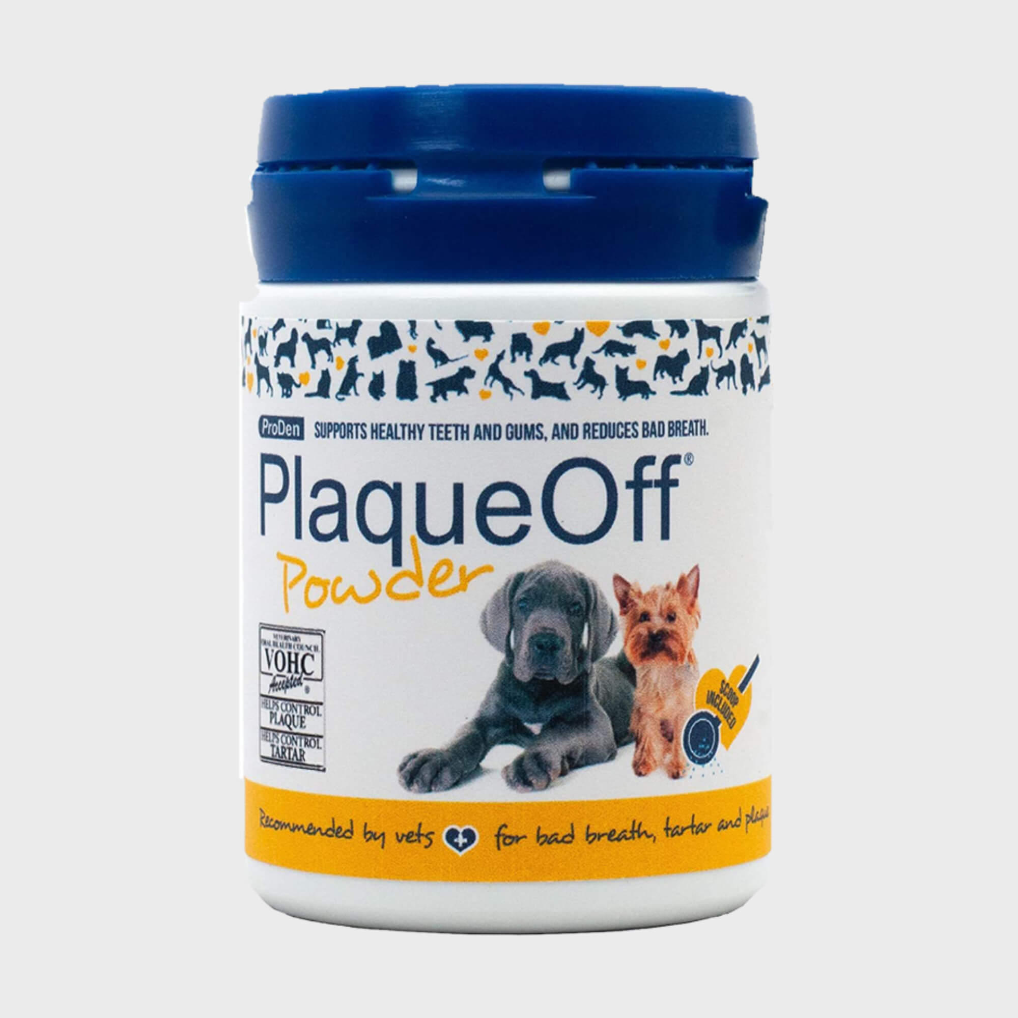 ProDen PlaqueOff Dental Care Powder for Dogs & Cats comes in a granulated form which is easily added to food every day with the included measuring spoon. PlaqueOff Animal is suitable for both cats and dogs.