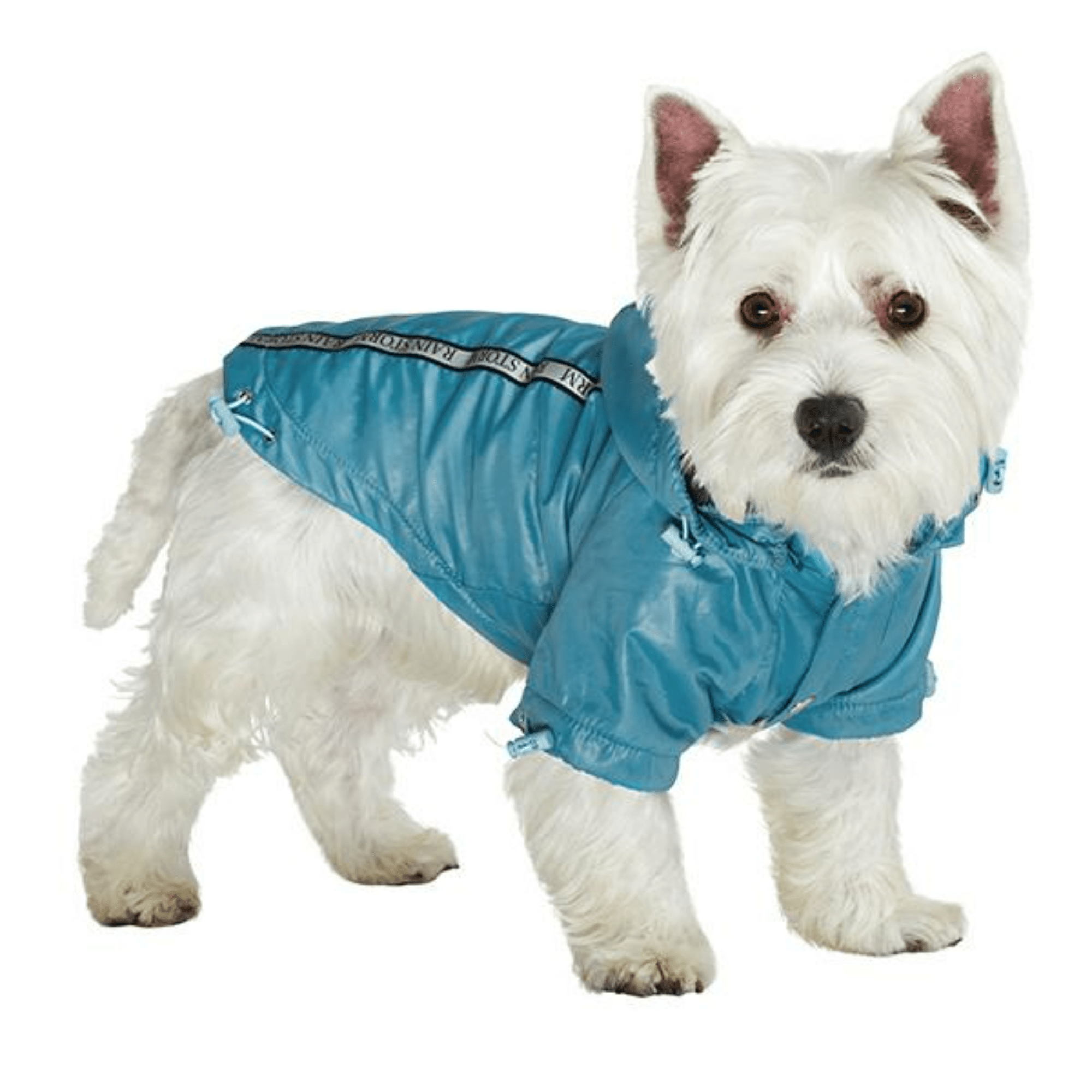 Ideal for smaller dog breeds our new Rainstorm Rain coats will protect your dog from the rain and with it's hi-visibility stripe will help them be seen. The adjustable draw string hood will keep the raincoat snug to your dogs face and a drawstring on the hem will allow you to get a nice tight fit to keep the body warm and dry. A soft fleece lining will keep your dog comfortable. The fastening popper buttons make it easy to put on and take off your dog. The hood is detachable and easy to pop on and off. |