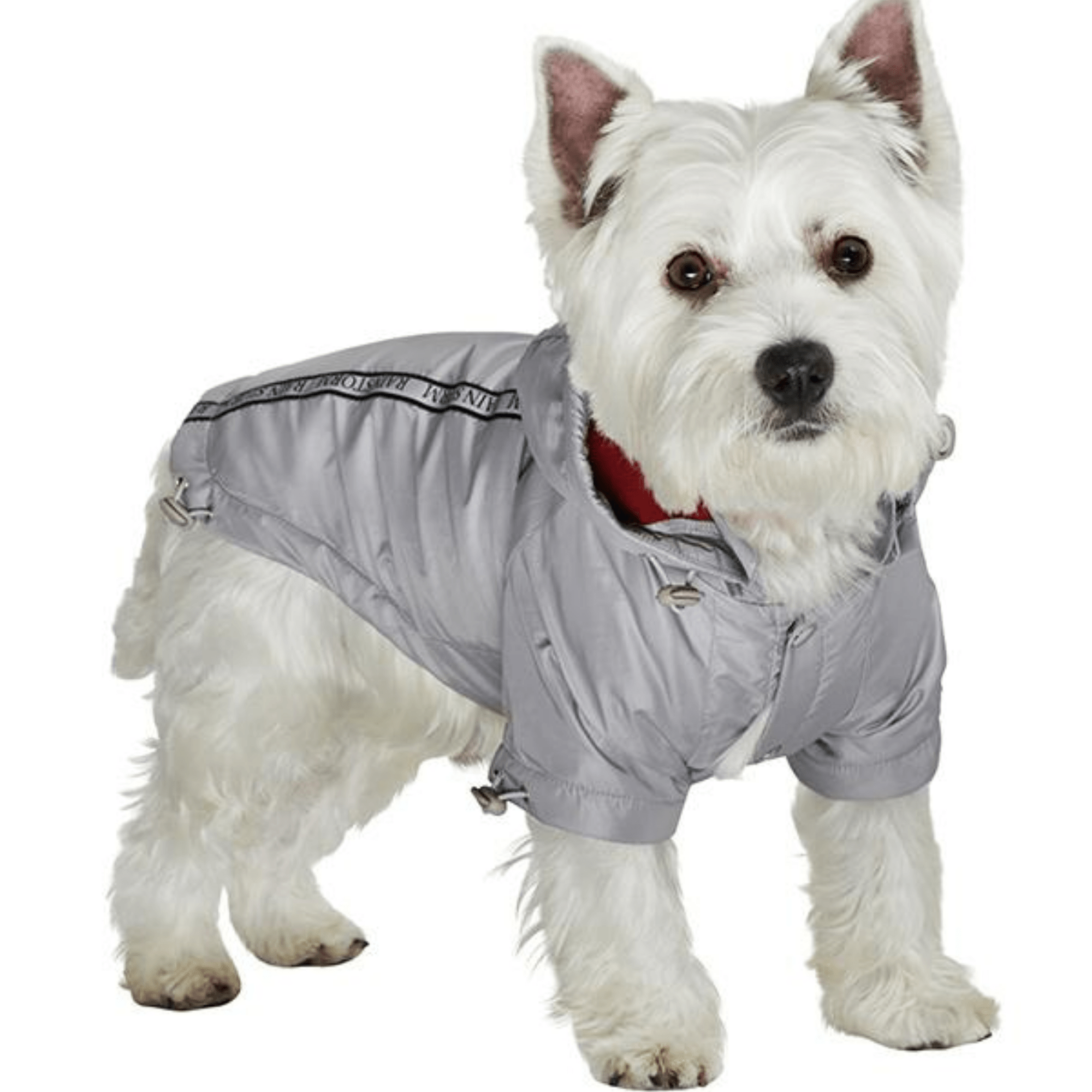 Key Features Leash hole to allow a harness to be worn underneath Fleece lined Water resistant Detachable hood Hi-visibility stripe |