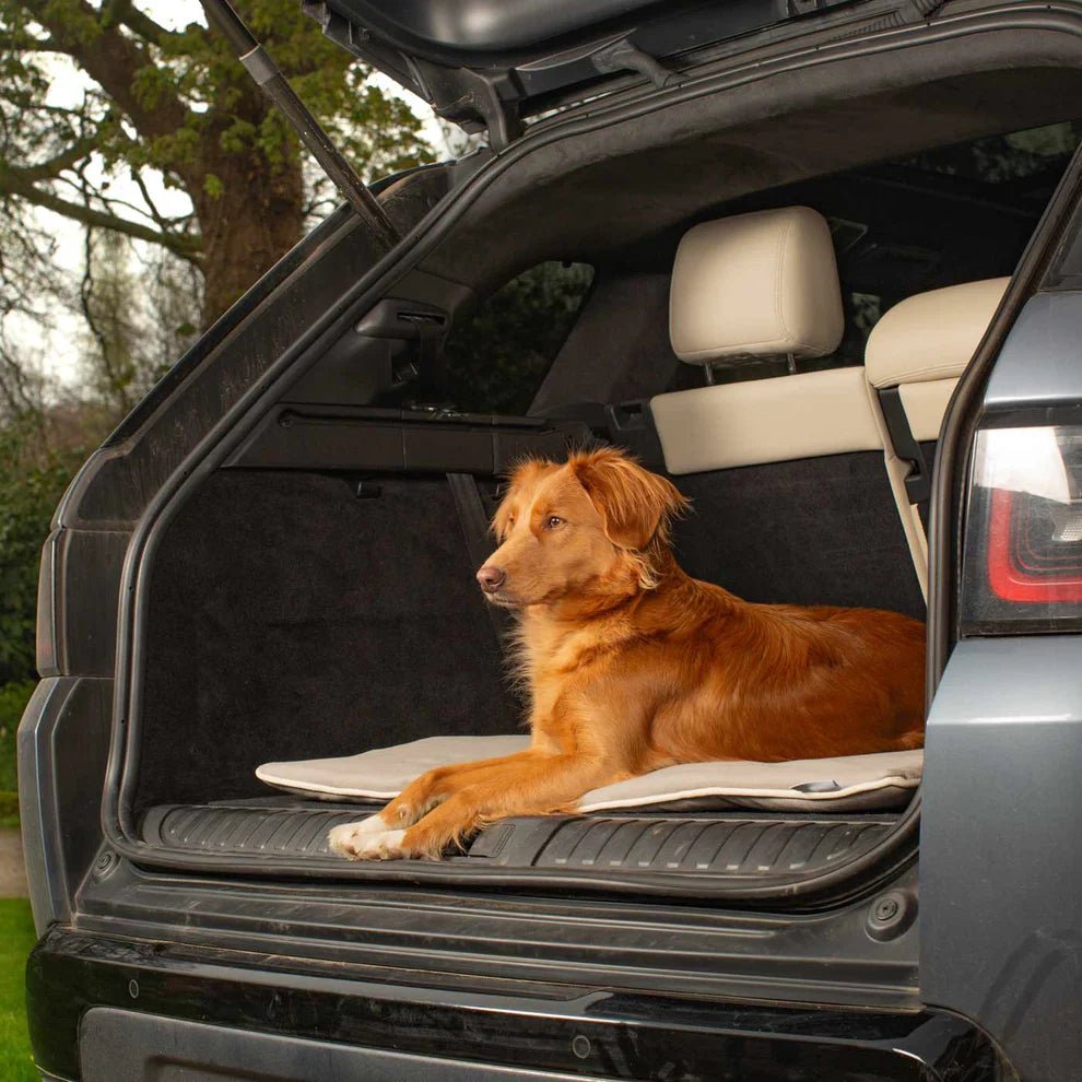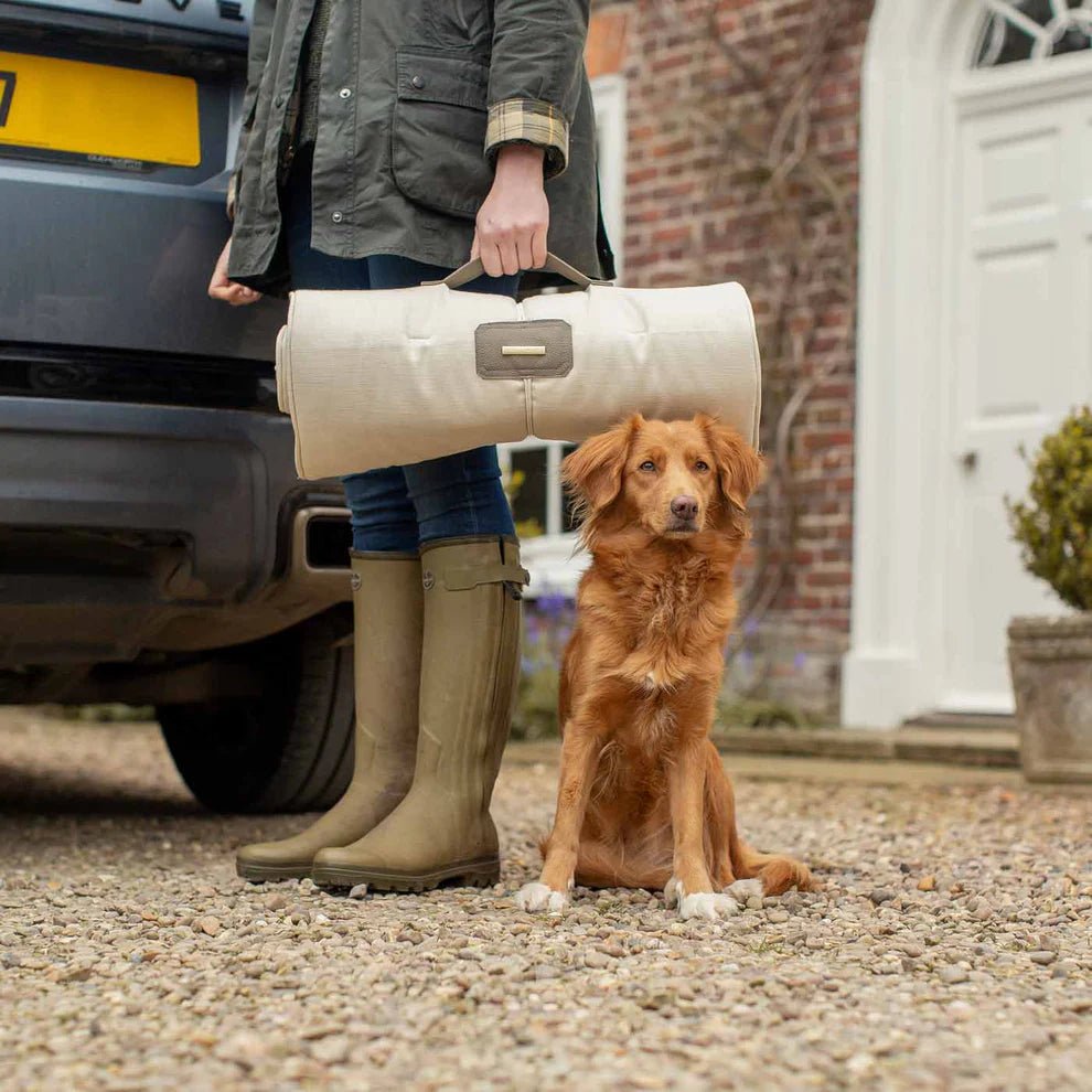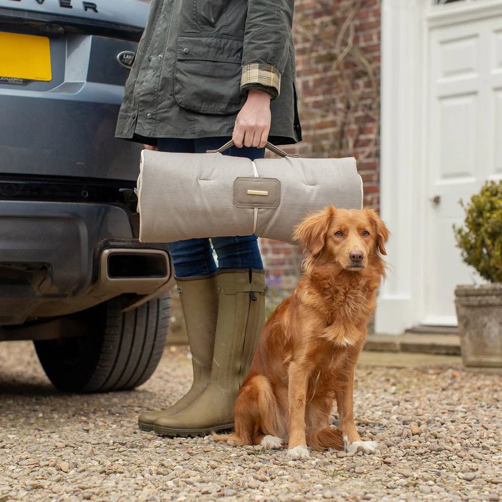 The Lords & Labradors Savanna Travel Mat is an essential accessory for any pet owner. Crafted from hardwearing Savanna cotton, it rolls up to a convenient size for storage and features a carry handle for easy portability. This versatile mat can be used as a seat cover, boot mat or travel bed, and is available in two sizes and three colours.