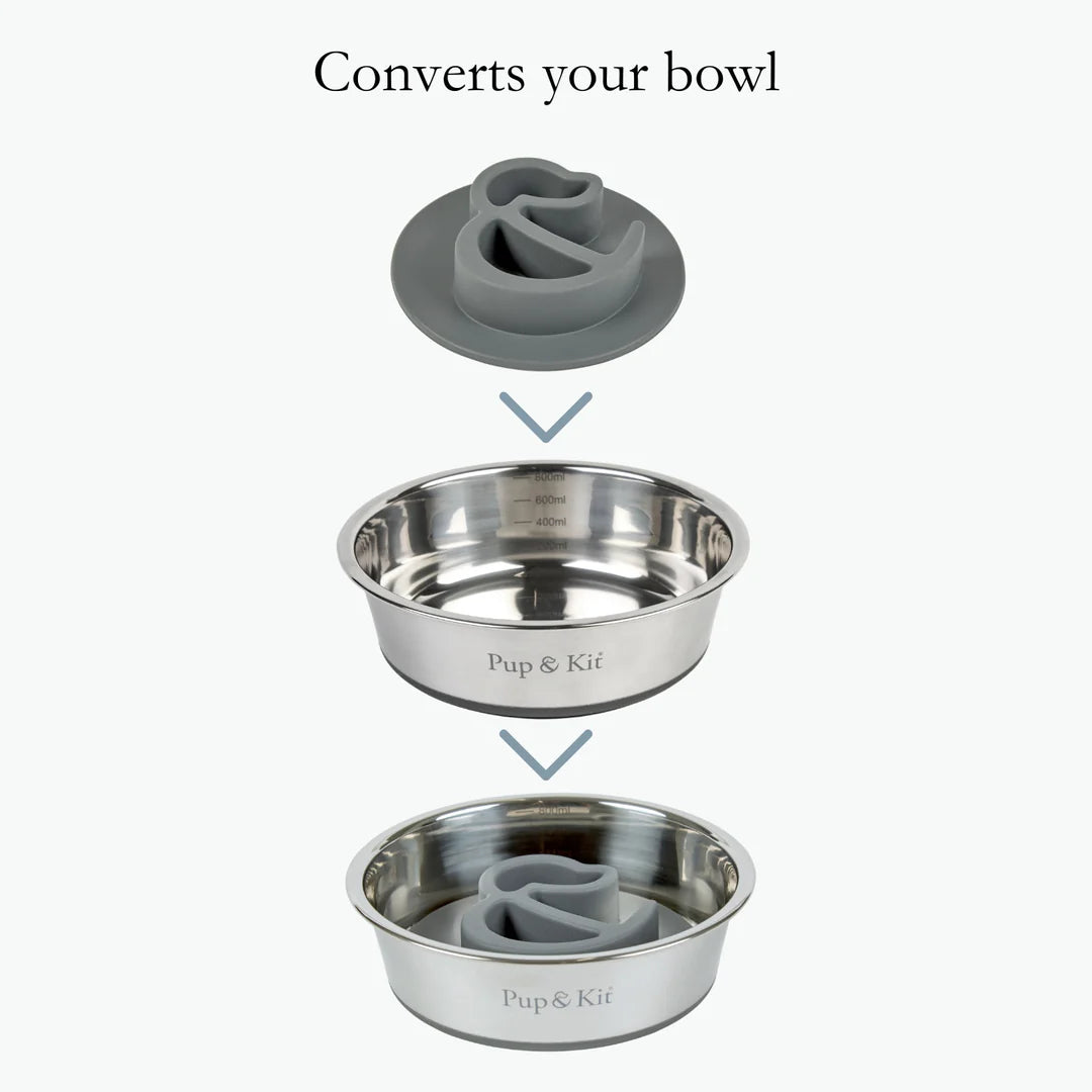 Say goodbye to frantic gobbling and hello to calmer, healthier eating. The Pup & Kit Slow Feeder Bowl Insert with suction cup is a smart, fuss-free way to help your pup slow down at mealtime - aiding digestion and reducing bloat.